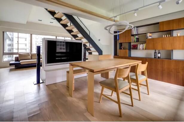這時用簡單的柜子就能區隔出空間,能保留空間穿透感,也能坐下來好好吃頓飯!